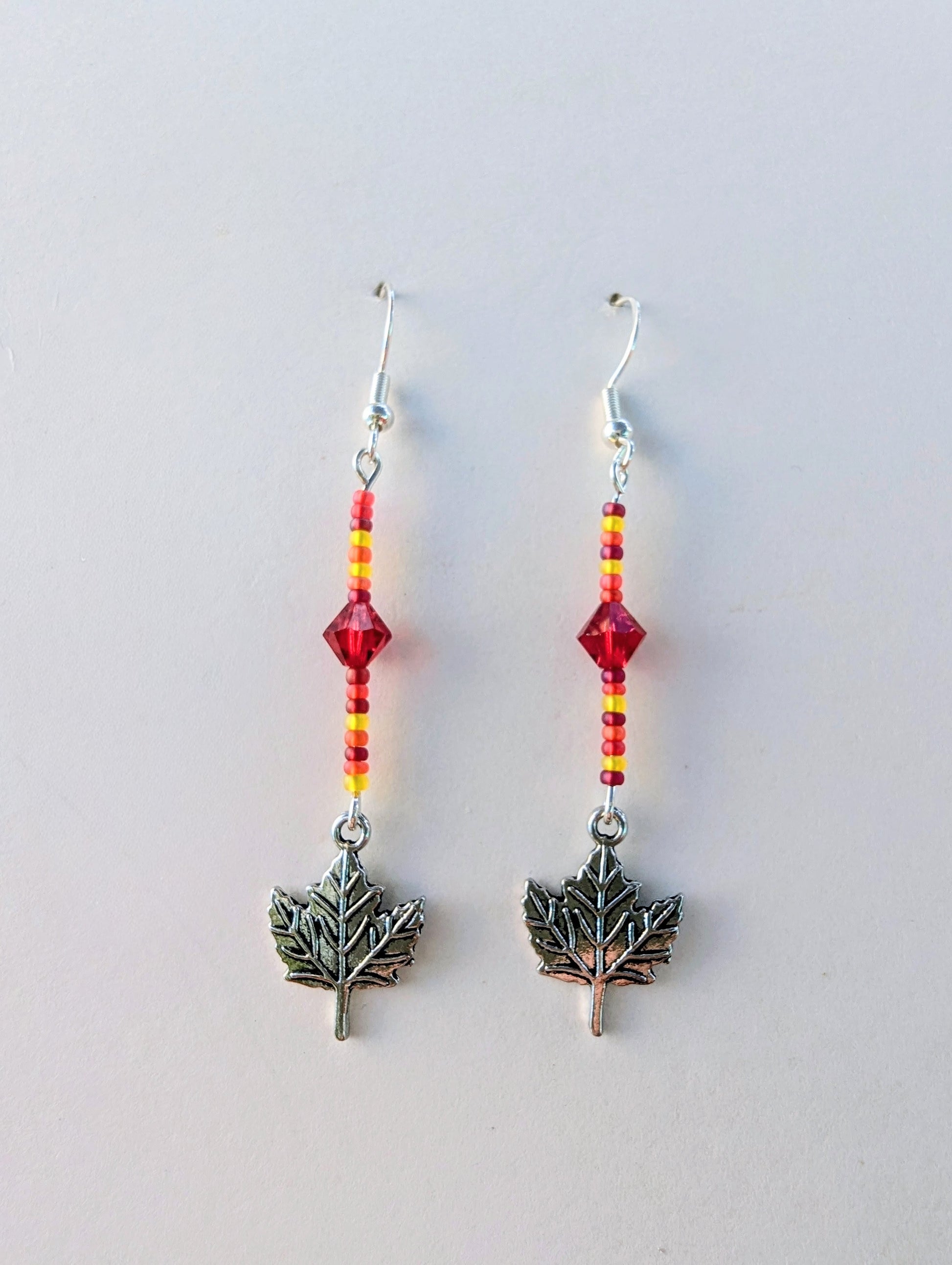 Embrace the cozy vibes of fall with our "I am an autumn" Red earrings. Featuring a silver maple leaf charm. These earrings are the perfect accessory for the autumn season. The red color adds a touch of vibrancy. Bring out your inner autumn with these dangles!