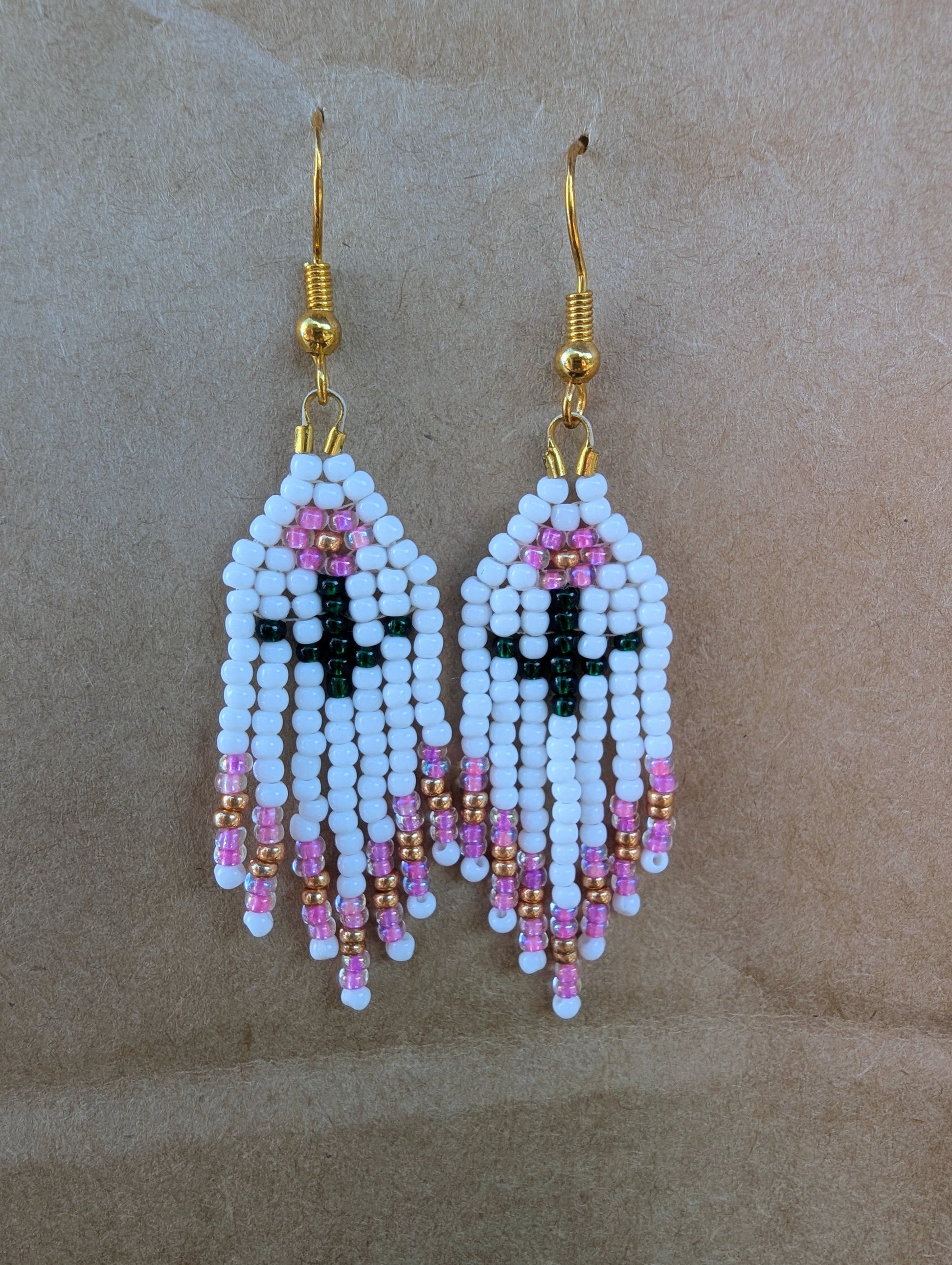 Earrings are hand sown with glass seed beads, nylon thread and lots of love!