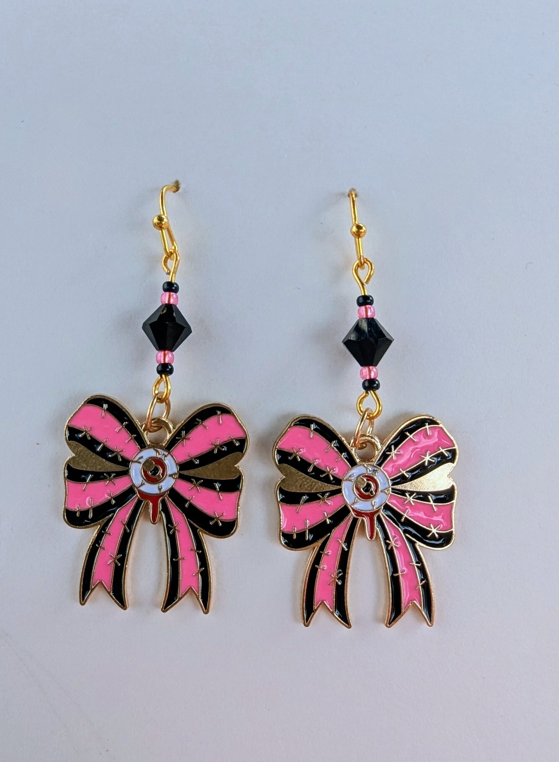 Show off your inner Monster High with these zombie girl bow earrings. Perfect for when you want to feel spooky and cute!
